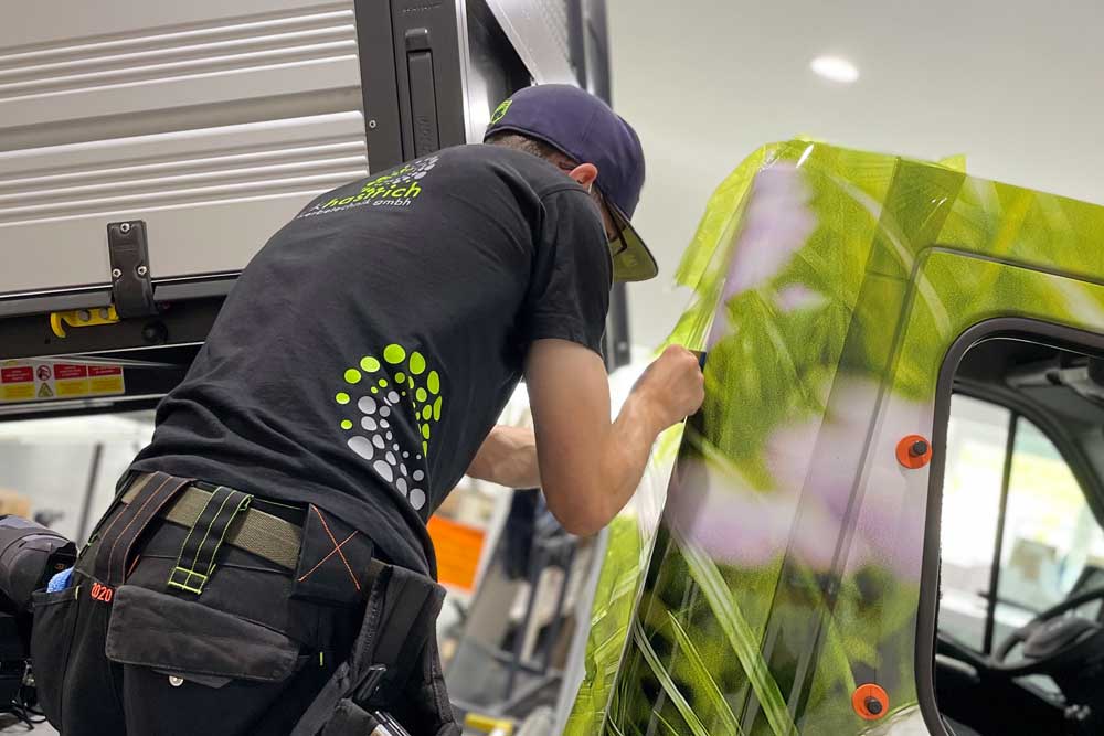 Unser KnowHow und unsere Räumlichkeiten sind ideal für die Beklebung nahezu jedes Kfz vom PKW bis zum Bus oder Sattelzug. Punktgenaues Angebot, maßstabsgetreue Visualisierung, Folientopqualität für eine lange Lebensdauer.